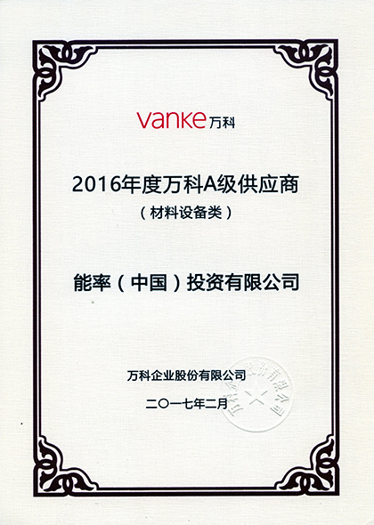 2016年度萬科 A級供應(yīng)商