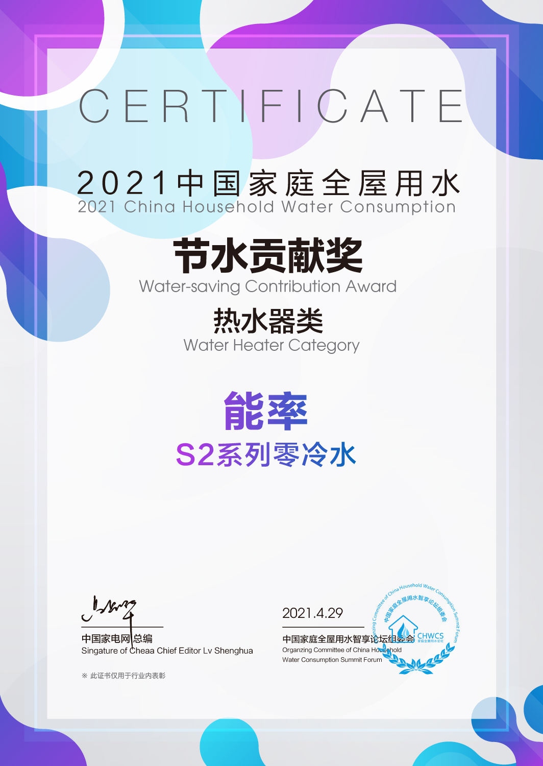 2021中國家庭全屋用水節(jié)水貢獻(xiàn)獎