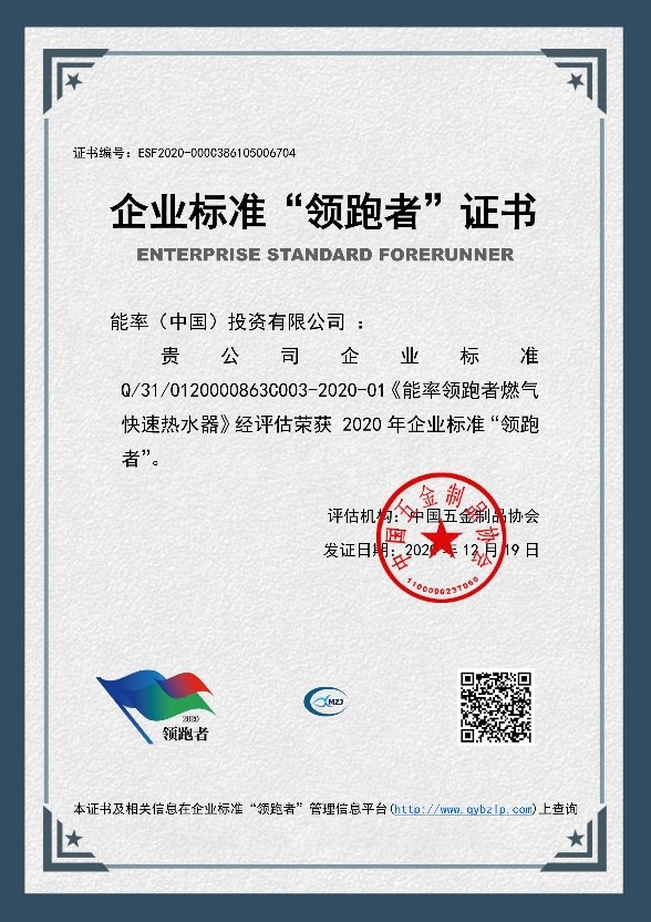 企業(yè)標(biāo)準(zhǔn)“領(lǐng)跑者”證書