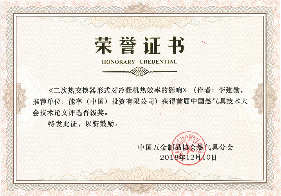2018年首屆中國(guó)燃?xì)饩呒夹g(shù)大會(huì)技術(shù)論文評(píng)選晉級(jí)獎(jiǎng)