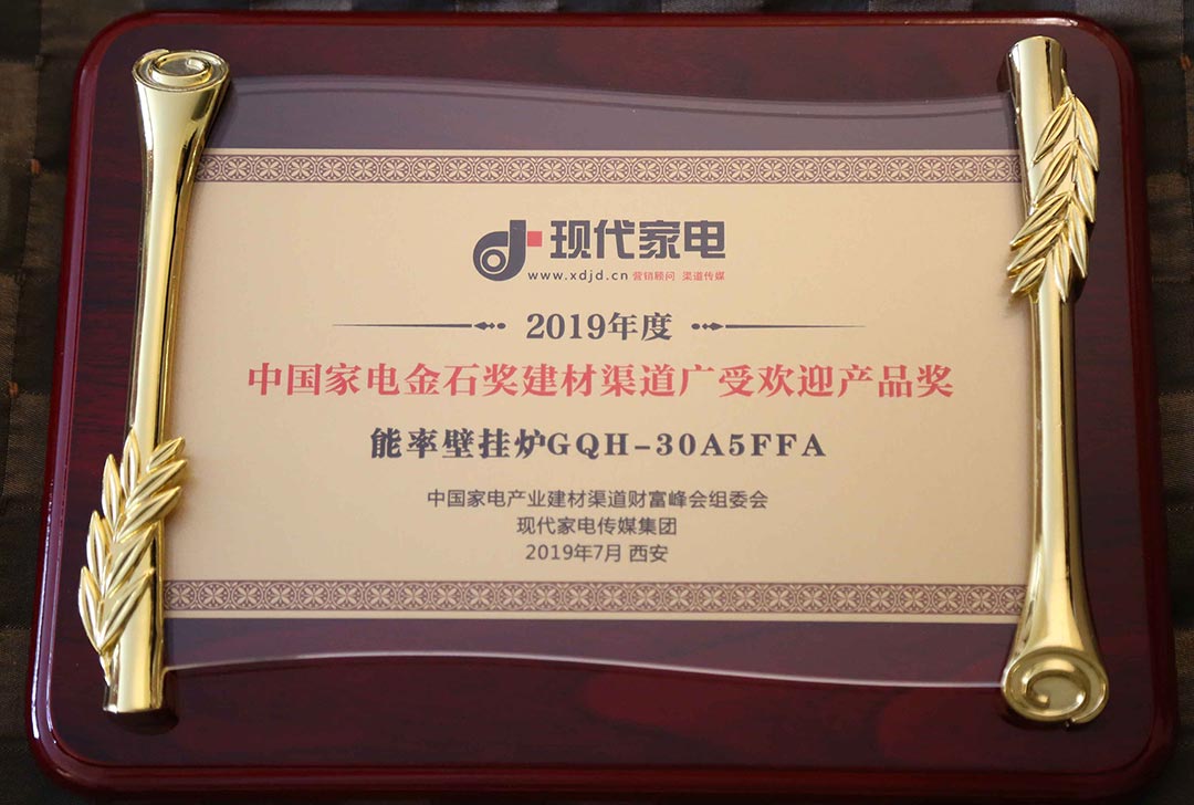 現(xiàn)代家電2019年中國(guó)家電金石獎(jiǎng)建材渠道廣受歡迎產(chǎn)品獎(jiǎng)