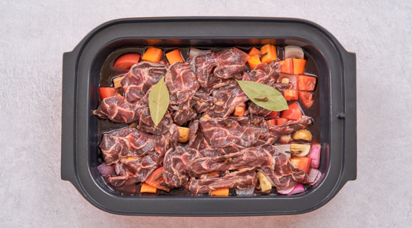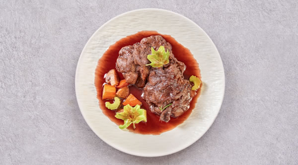 由經(jīng)典法國菜改良而成的家庭版,以番茄、紅酒、蔬菜為基底,加入薄切的牛腱肉,全程不加一滴水原汁原味。