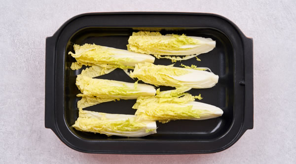 STEP 01娃娃菜去根清洗干凈,切成條放入深鍋 -
