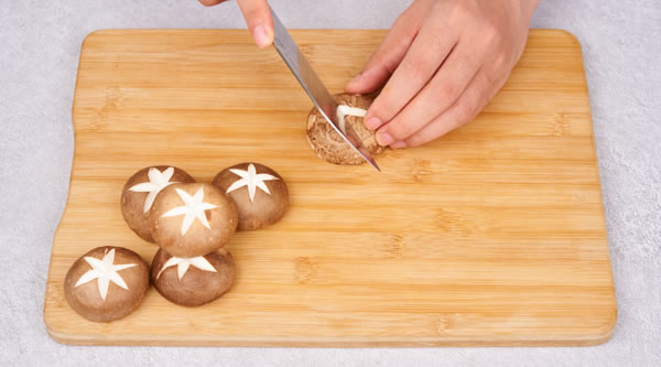 STEP 03香菇洗凈,去蒂,開花刀,放在表面 -