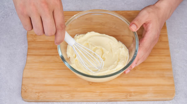 STEP 01將奶油奶酪加糖打順滑 -