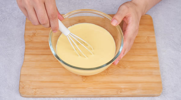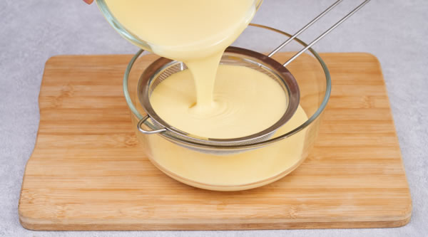 STEP 03加入淡奶油、玉米淀粉混合至無顆粒過篩備用 -