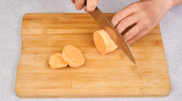 STEP 01紅薯去皮切2cm厚放入深盤 -