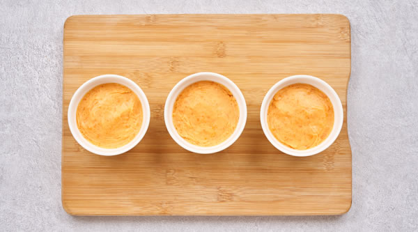 STEP 06放入高度為4cm、內(nèi)直徑為8cm的燉盅,內(nèi)壁抹黃油,均分為3個(gè) -