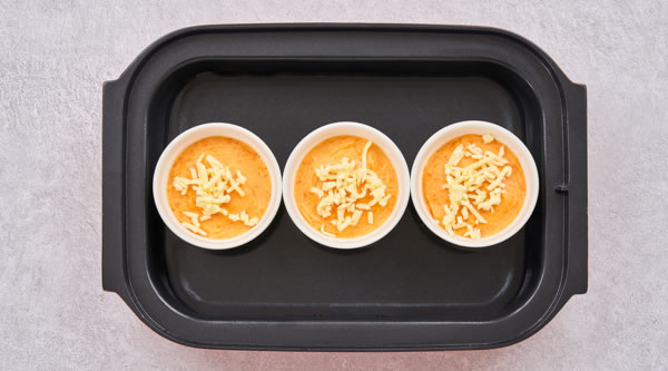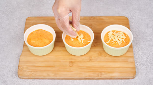 STEP 07每個(gè)燉盅頂部均勻撒上約3g馬蘇里拉 -
