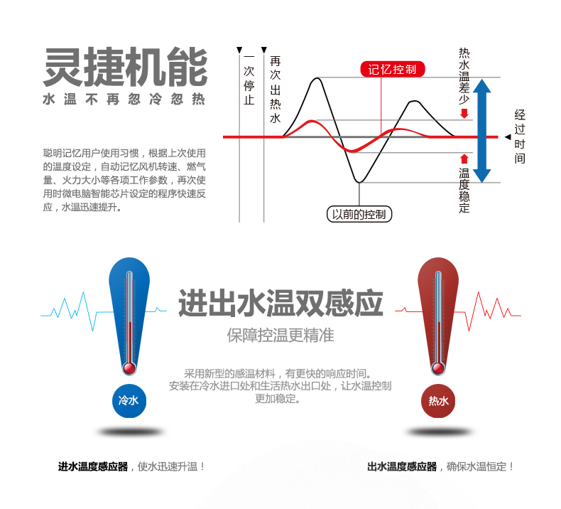 溫度控制方式:電子式燃?xì)獗壤刂品绞?水量伺服器控制方式
