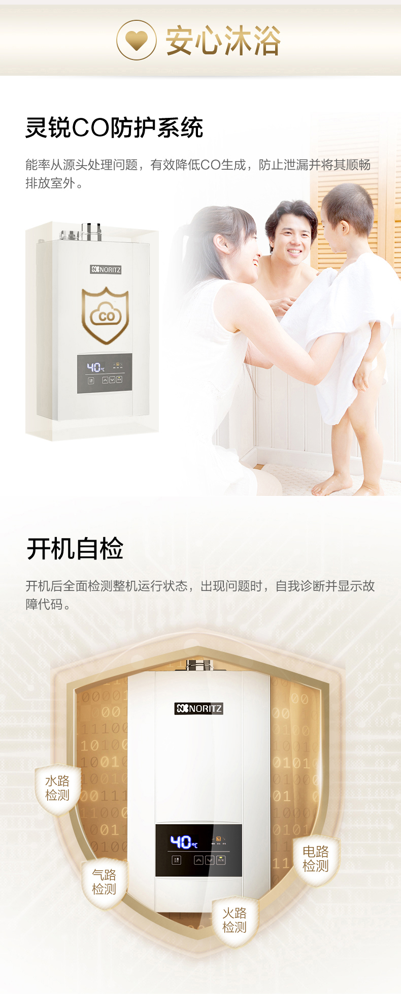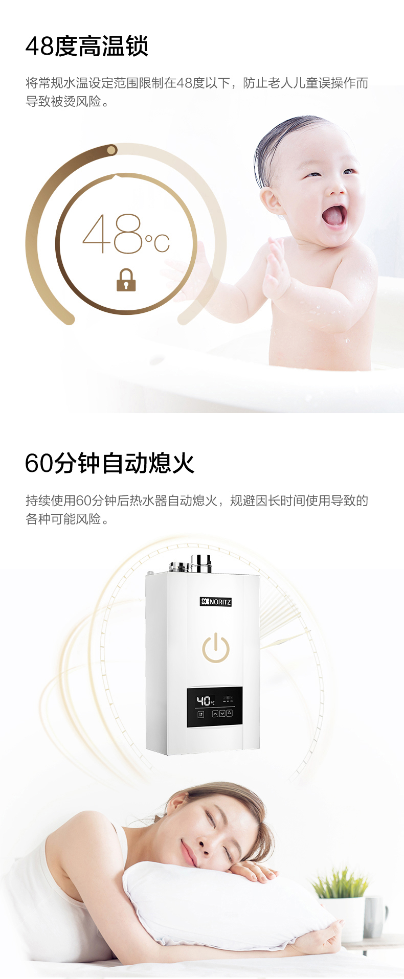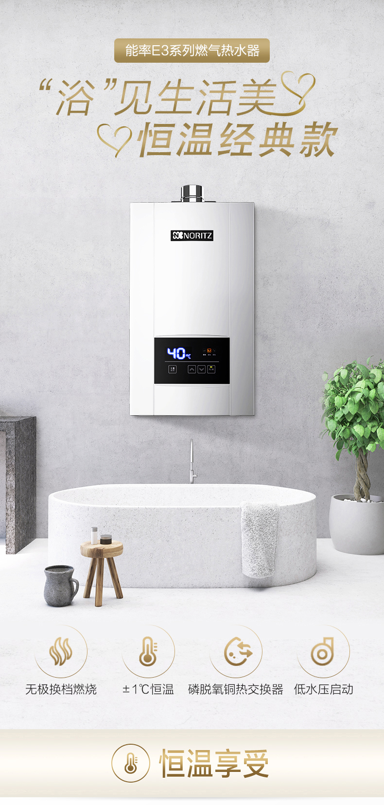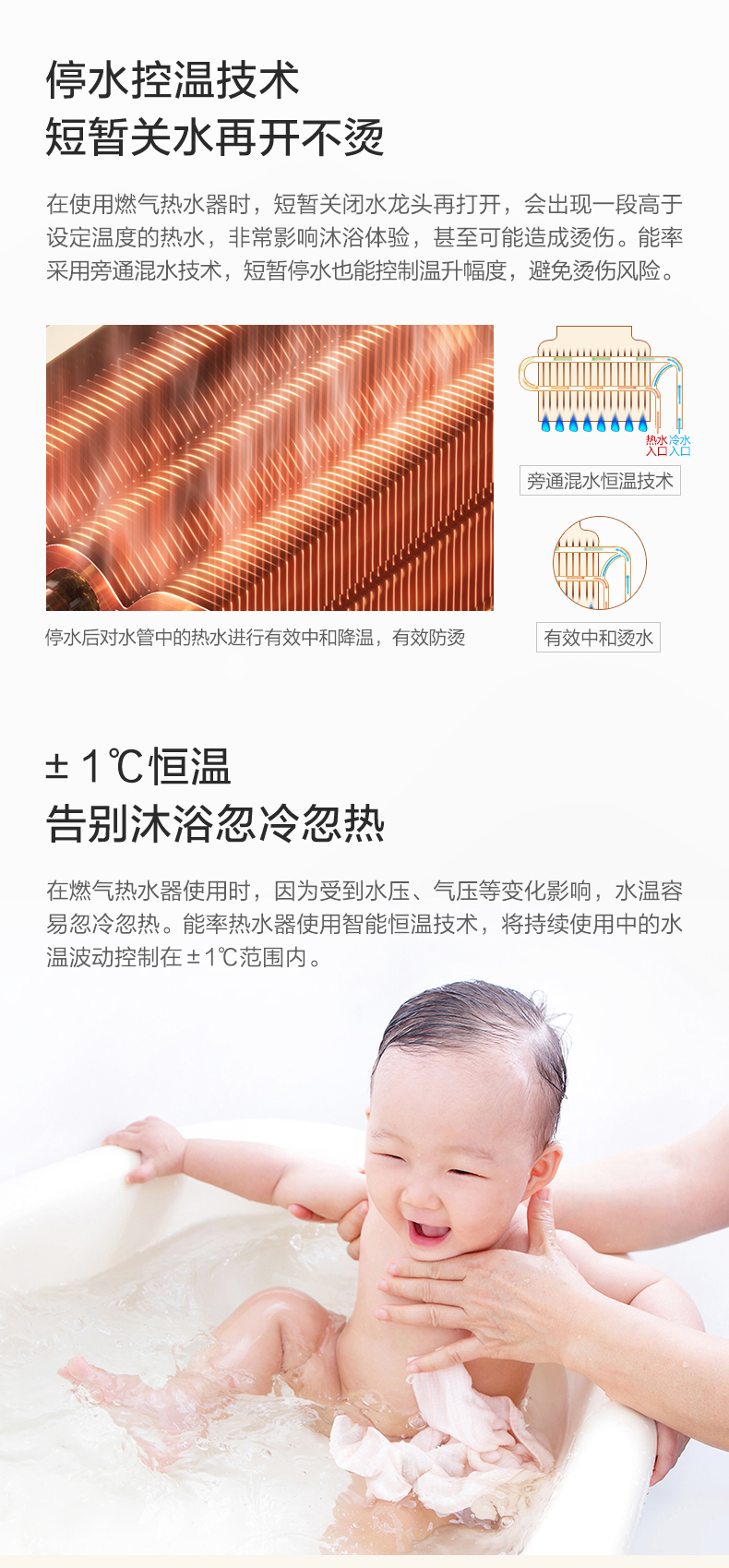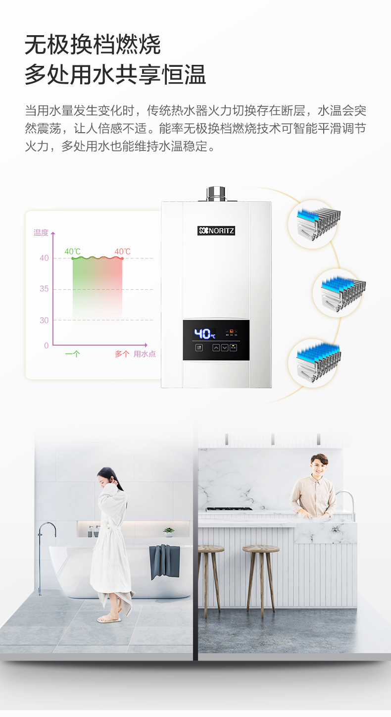 • 無級切換燃燒 多點用水也恒溫