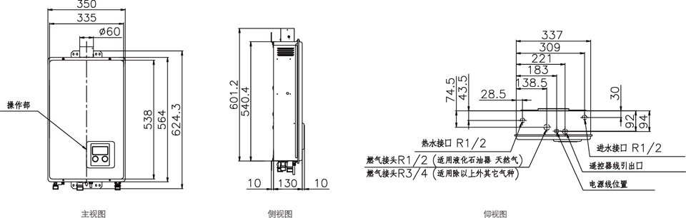 燃?xì)夤埽?/strong>天然氣、液化石油氣R1/2,其余燃?xì)釸3/4