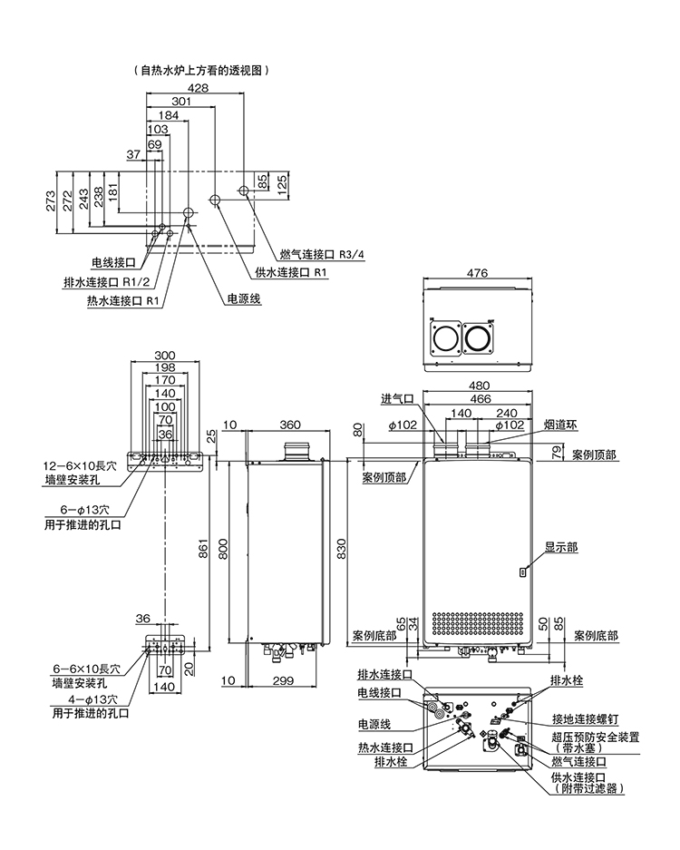 安全裝置:熄火安全裝置、防空燒安全裝置、停電時安全裝置、過熱安全裝置、防過電流裝置、防凍裝置、防過壓安全裝置、風(fēng)機(jī)轉(zhuǎn)速檢測裝置、防沸騰裝置,防漏電安全裝置、導(dǎo)向防雷裝置、中和器堵塞檢測裝置