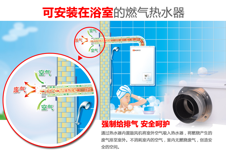 • 可直接安裝在浴室,燃燒所需空氣取自室外,燃燒產(chǎn)生廢氣排向室外