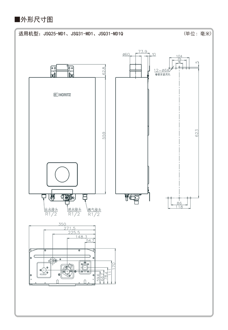 外型尺寸(mm):高559×寬350×深170