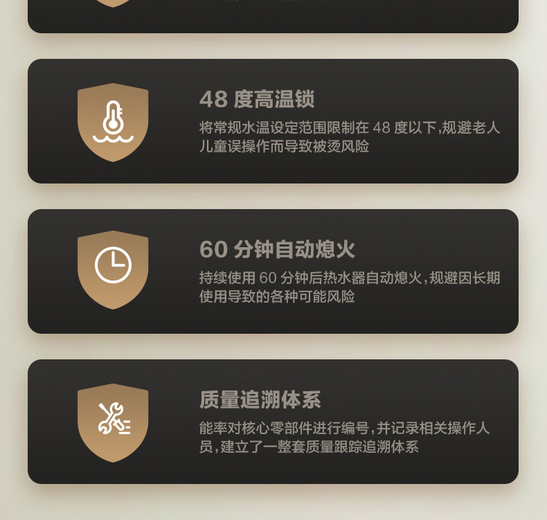 安全裝置:熄火保護(hù)、雙重過(guò)熱保護(hù)、余火保護(hù)、過(guò)壓保護(hù)、防雷擊保護(hù)、60分鐘定時(shí)停機(jī)保護(hù)
