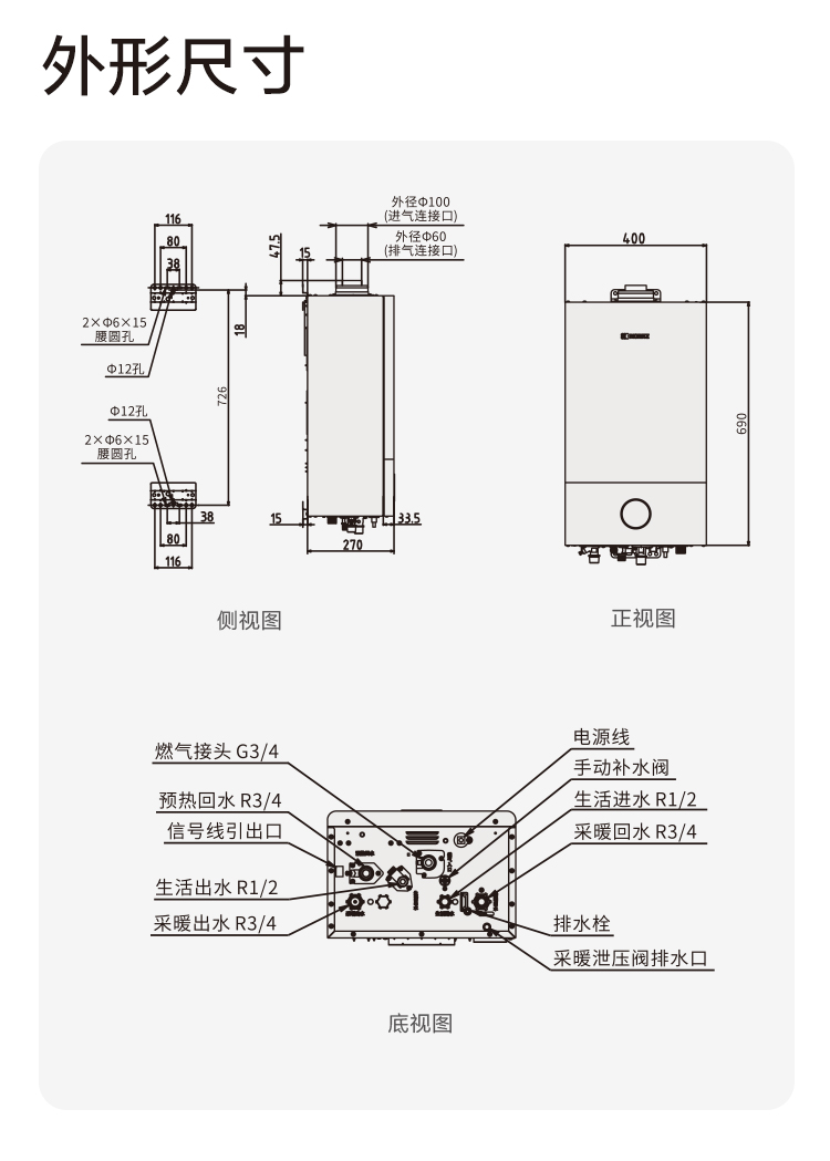 采暖(℃)進(jìn)水出水接口:R3/4"