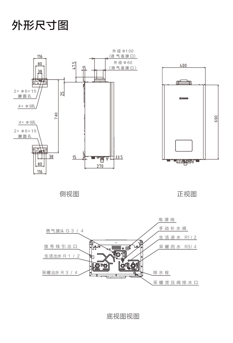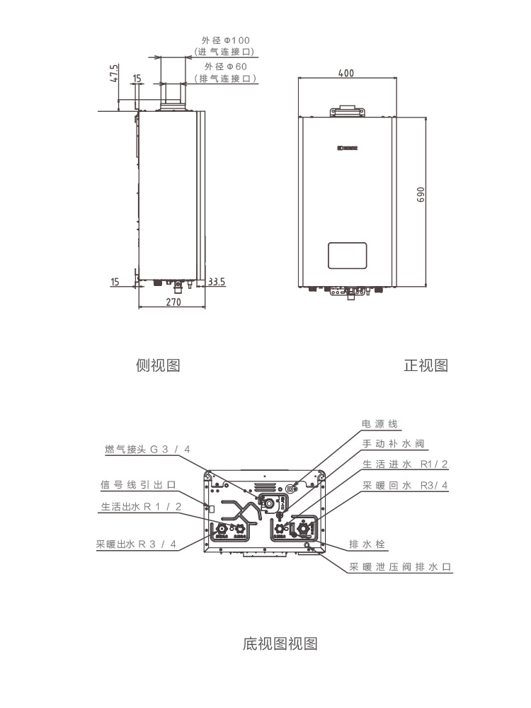 采暖(℃)進(jìn)水出水接口:R3/4"