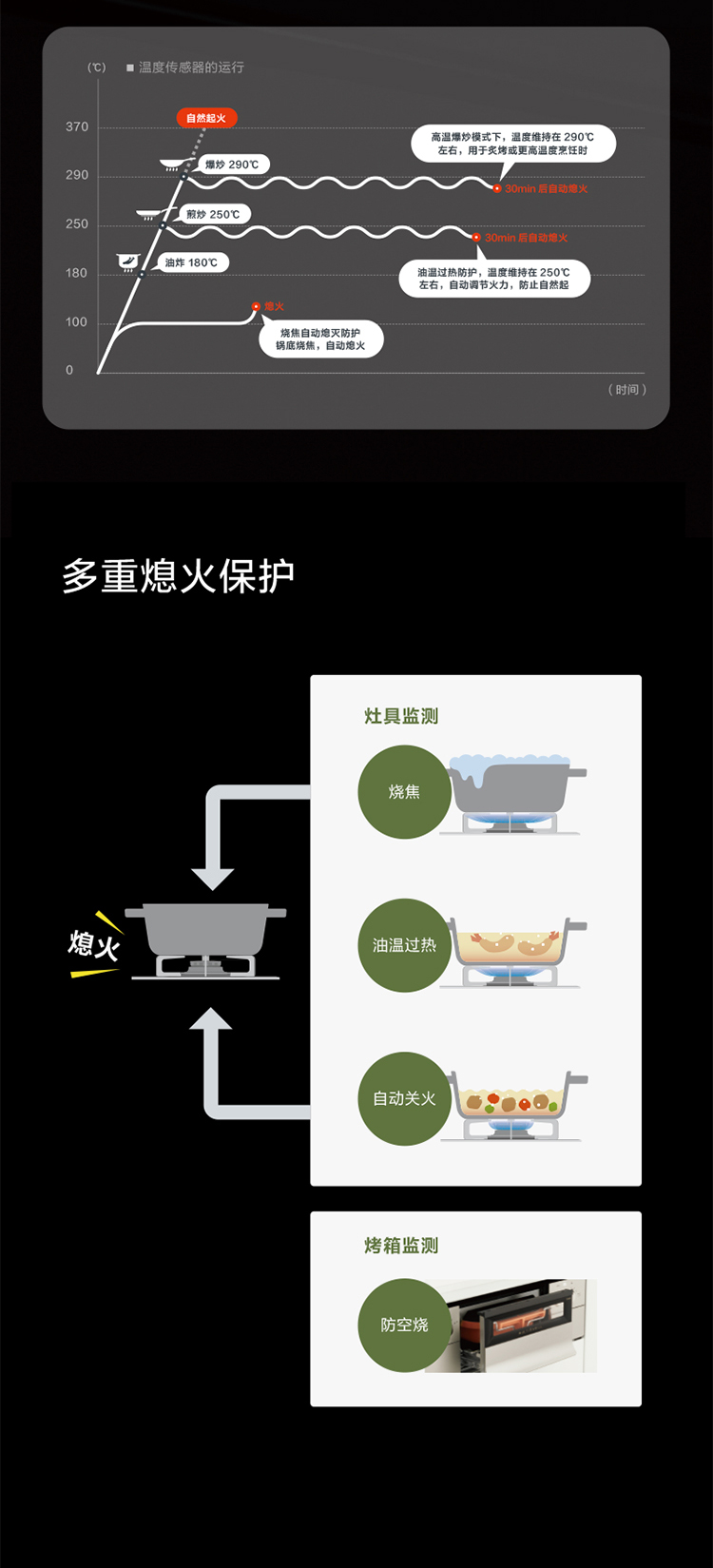 燃?xì)庠顮t頭:油溫過熱防護(hù)裝置 / 燃?xì)庠钭詣雨P(guān)火保護(hù)功能
