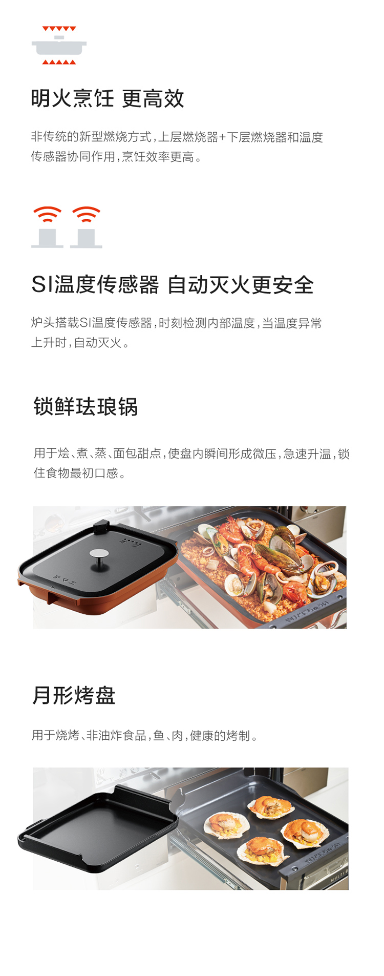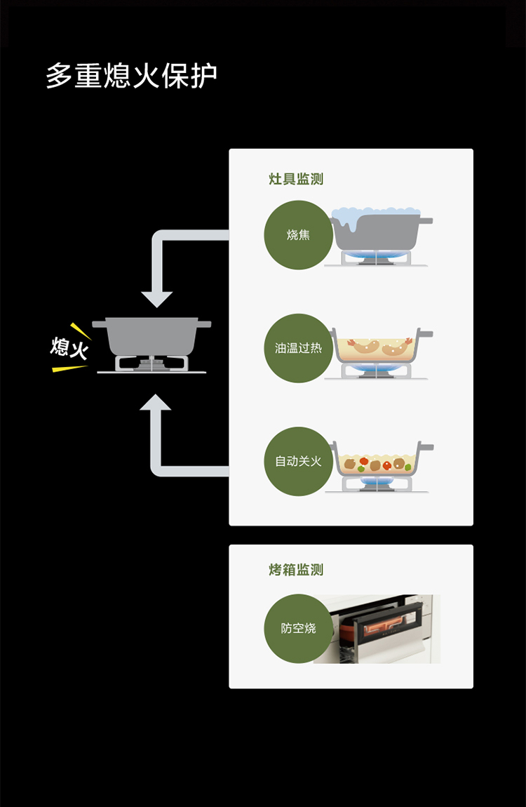燃?xì)庠顮t頭:油溫過熱防護(hù)裝置 / 燃?xì)庠钭詣?dòng)關(guān)火保護(hù)功能