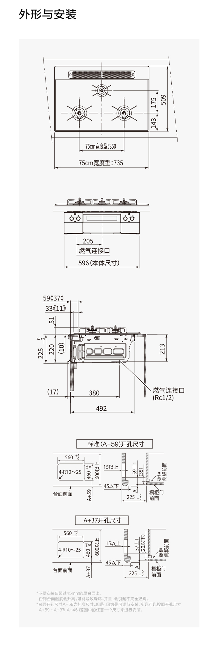 外型尺寸(mm):高271 × 寬596 × 深492 (面板寬735)