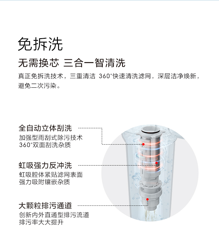 • 免拆洗,無(wú)需換芯 三合一智清洗