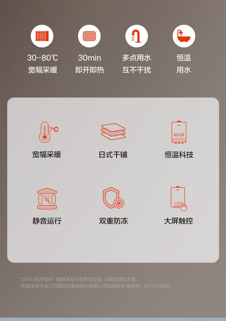 30%額定熱負荷(kW)采暖(℃)熱效率(%):≥85%
