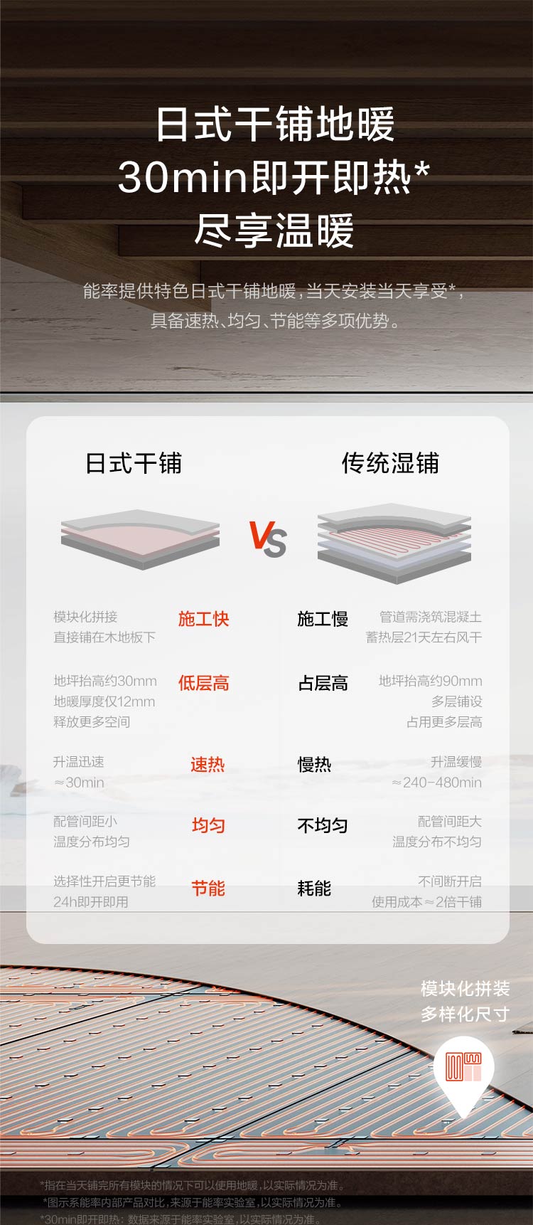 • 可搭配日式干鋪地暖,即開即熱更舒適