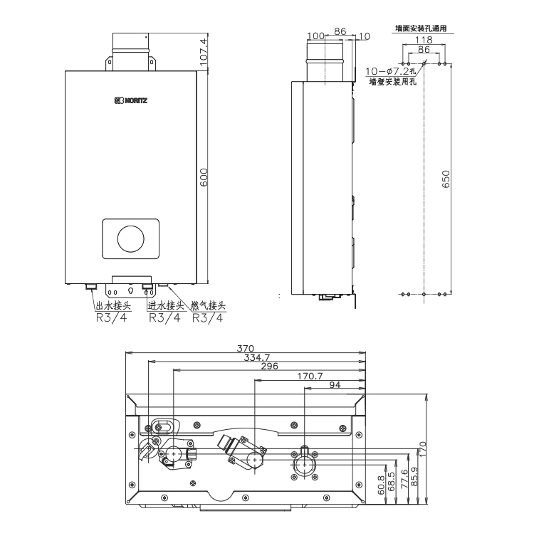 外型尺寸(mm):高600×寬370×深170