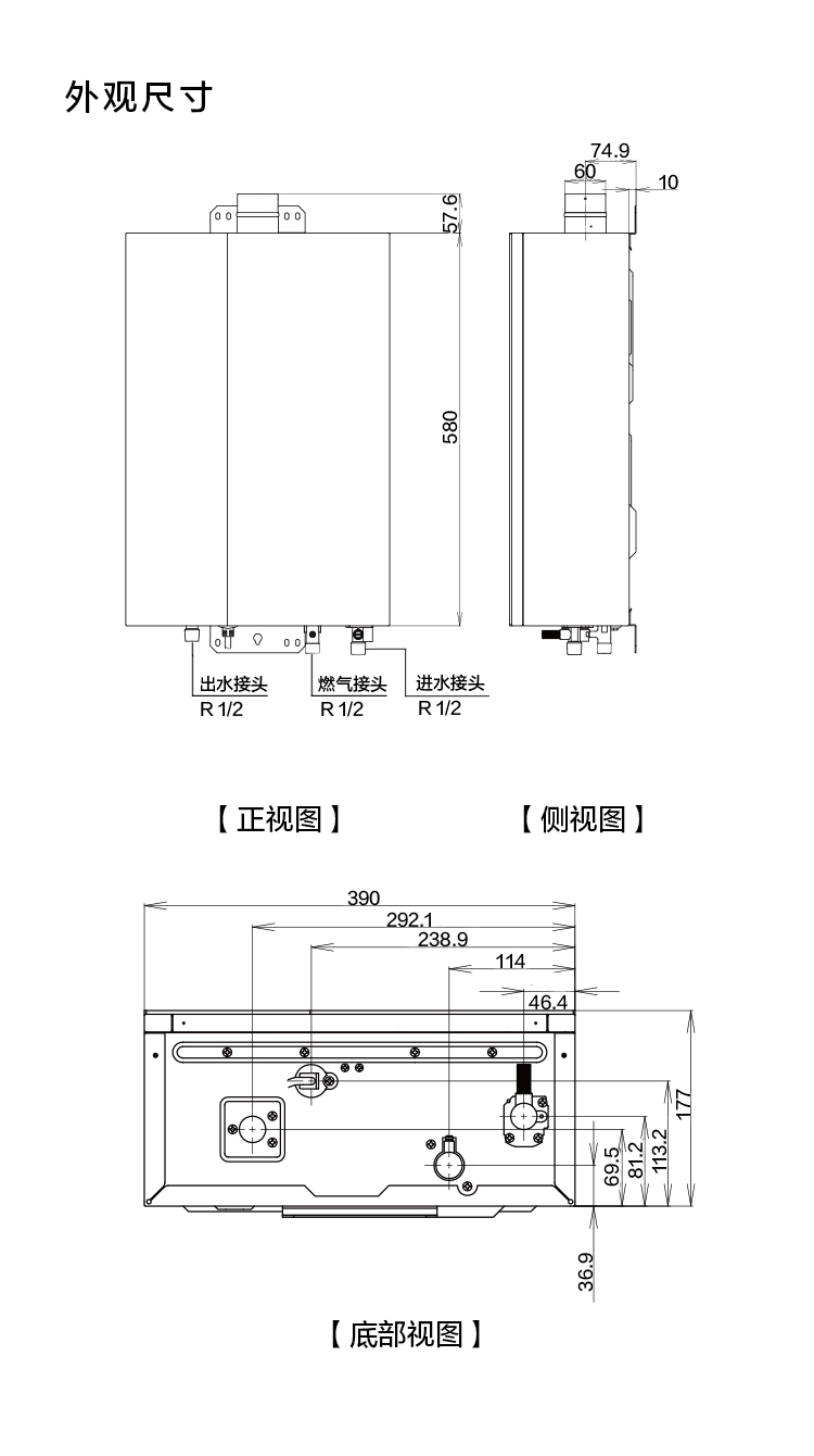 外型尺寸(mm):高580×寬390×深177