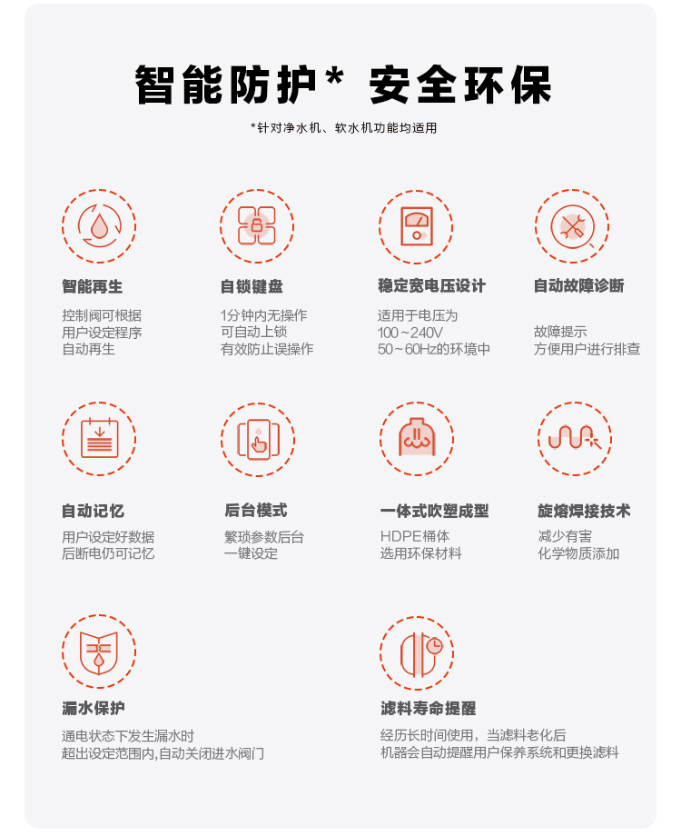 出水水質:符合《生活飲用水水質處理器衛(wèi)生安全與功能評價規(guī)范—一般水質處理器》(2001)的要求。