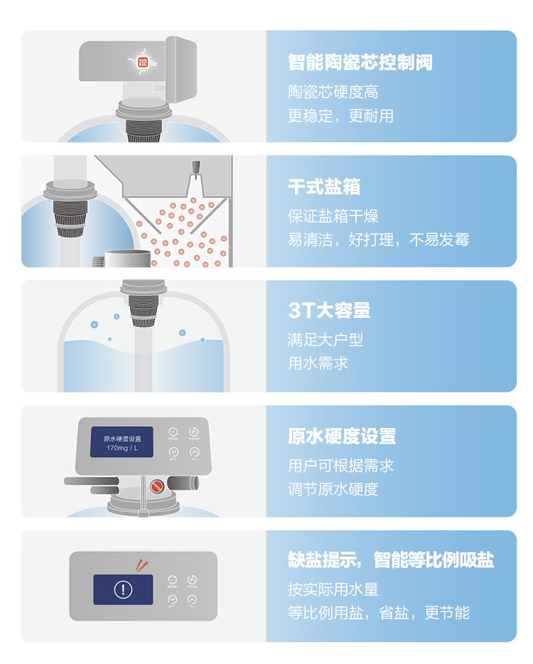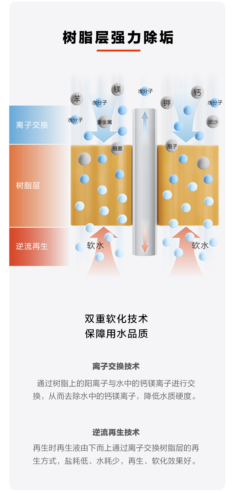 • 逆流再生技術,再生軟化效果好
