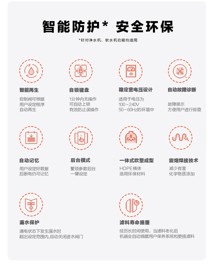 出水水質:符合《生活飲用水水質處理器衛(wèi)生安全與功能評價規(guī)范—一般水質處理器》(2001)的要求。