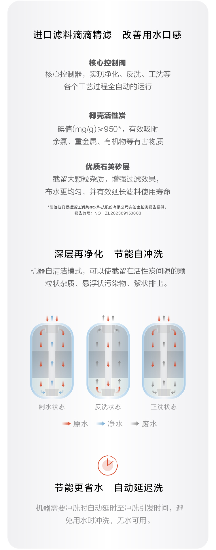 出水水質(zhì):符合《生活飲用水水質(zhì)處理器衛(wèi)生安全與功能評價規(guī)范—一般水質(zhì)處理器》(2001)的要求。