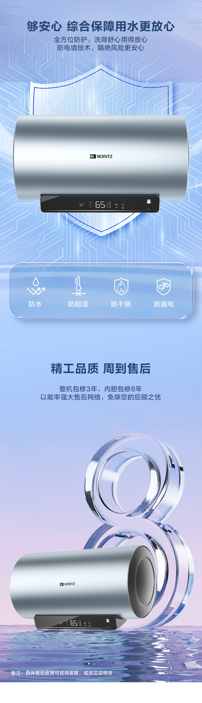 安全防護裝置:超溫保護、水壓過壓保護、防熱水倒流、防凍保護等