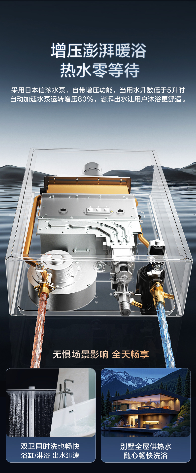 • 全屋零冷水,別墅級(jí)增壓大水量
