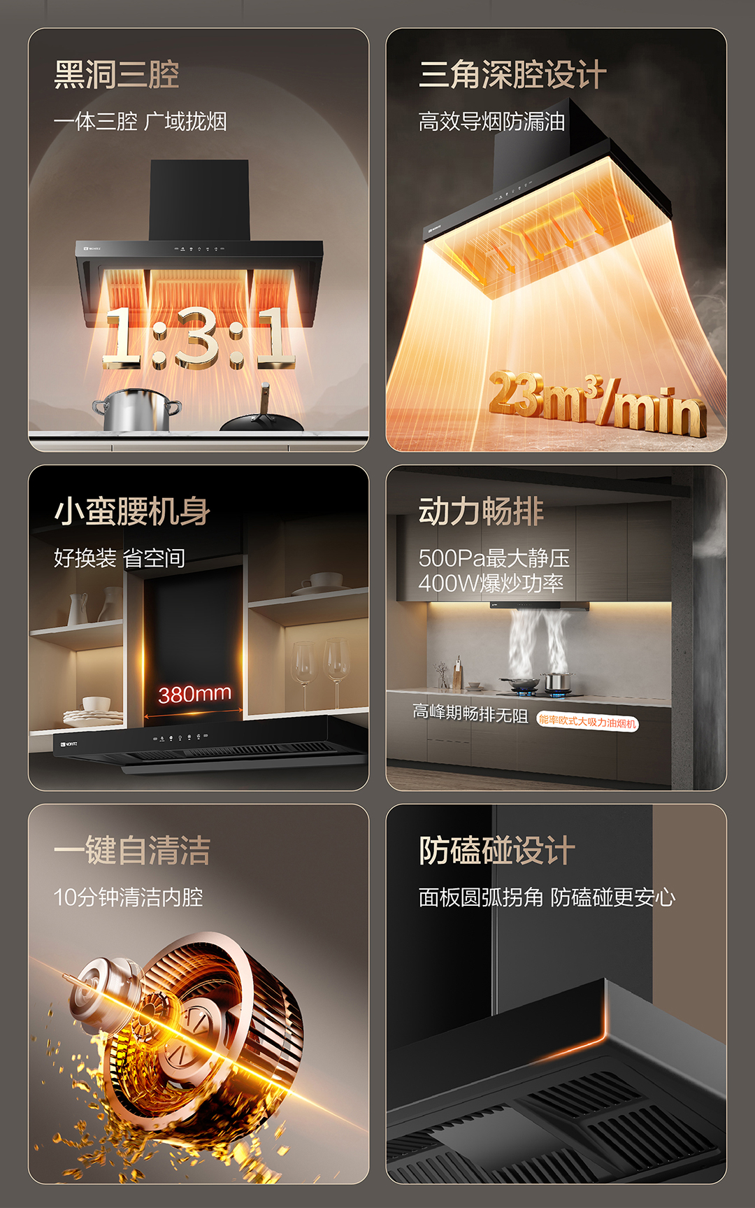 產(chǎn)品類型:三腔大吸力油煙機(jī)