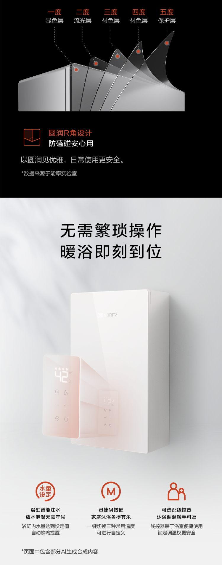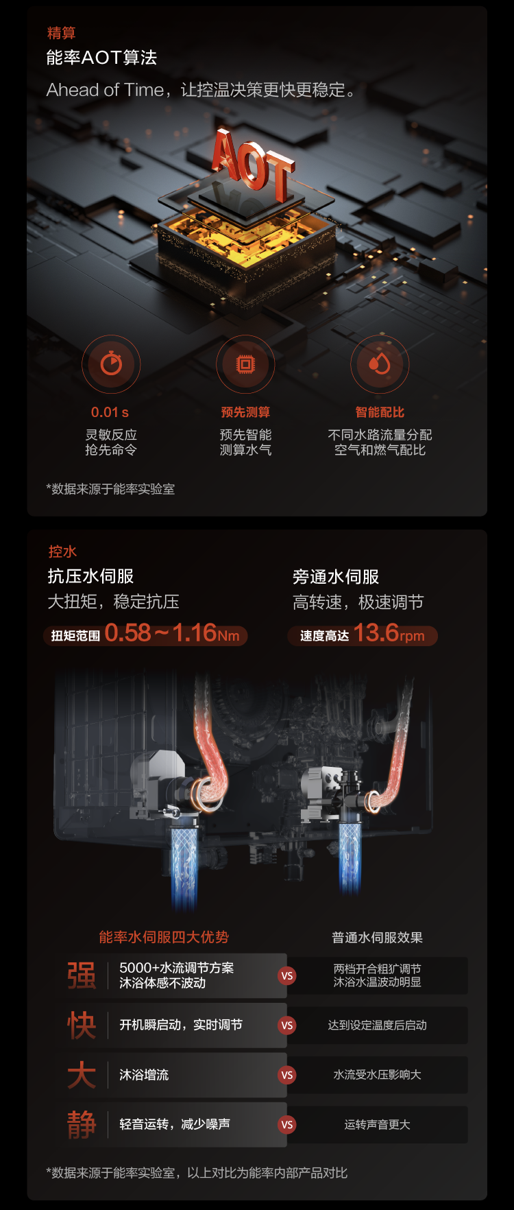 • 搭載雙水量伺服器,沐浴啟停無冷感