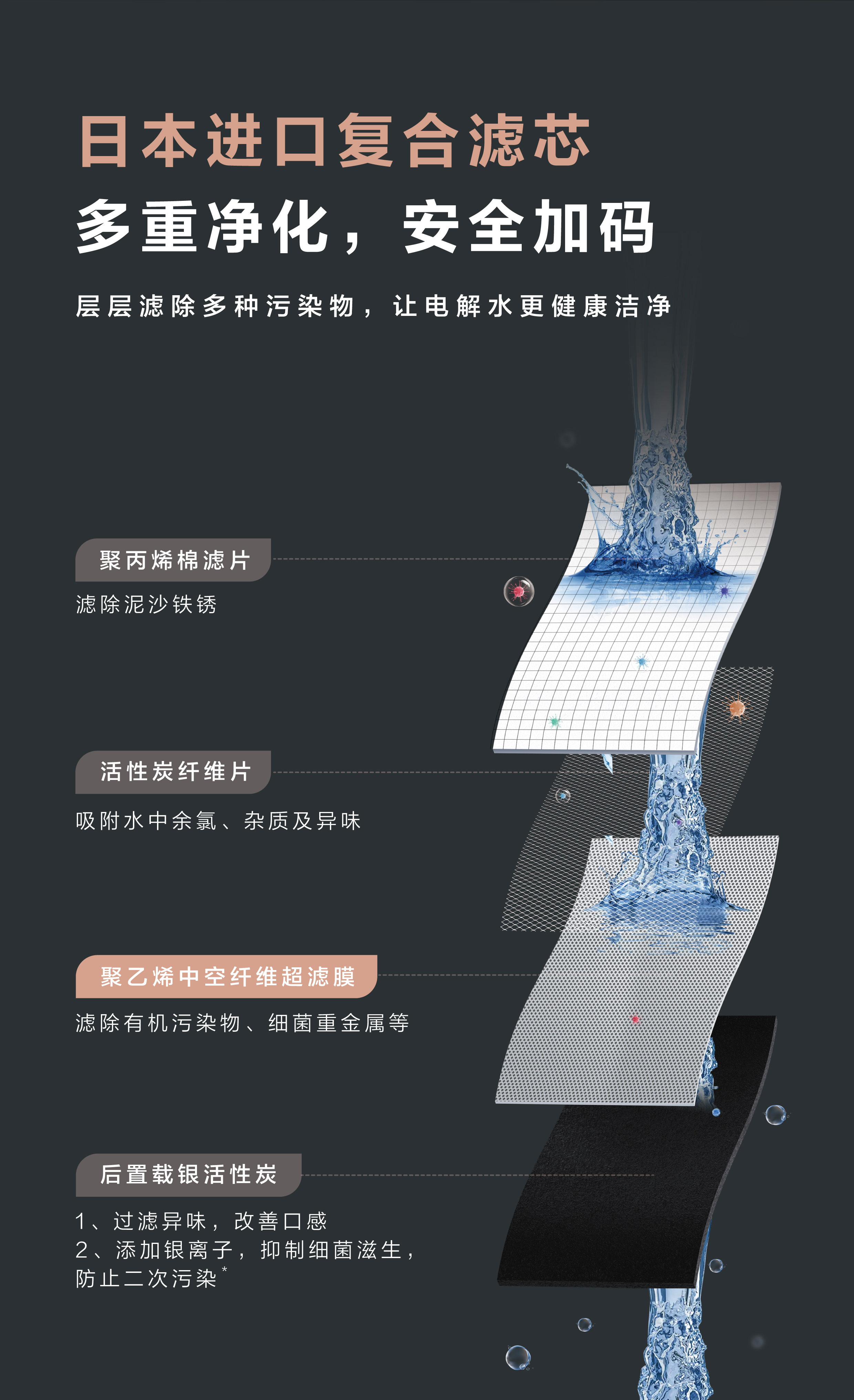 • 日本進(jìn)口復(fù)合濾芯,多重凈化層層濾除多種雜質(zhì)。