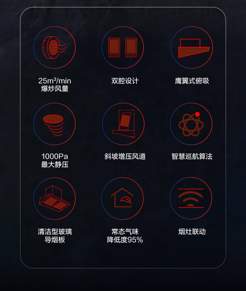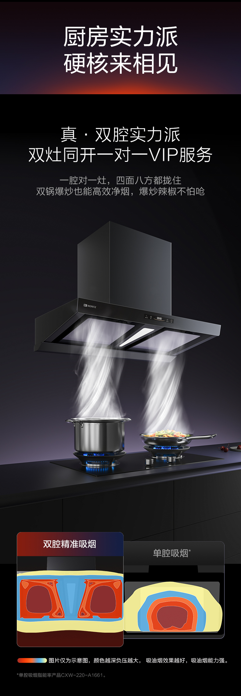 • 雙腔對(duì)雙灶 1V1高效凈煙