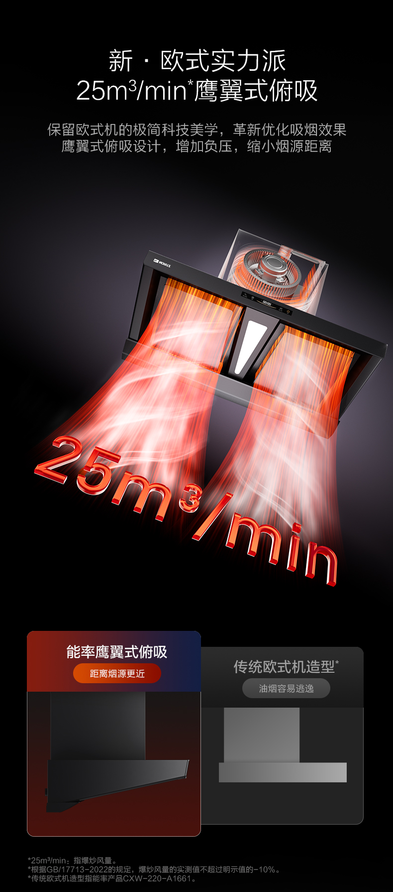 • 25m3/min爆炒風(fēng)量 鷹翼式俯吸