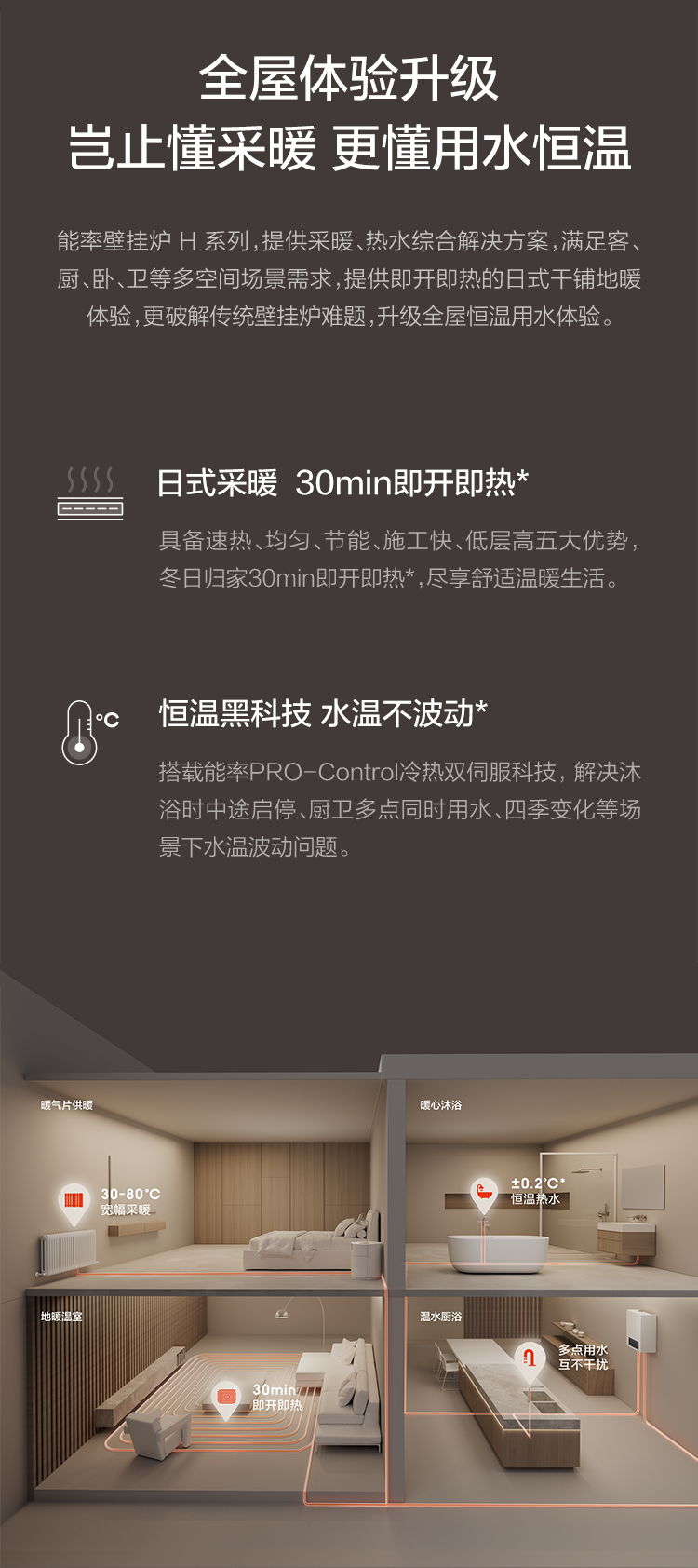 • 30-80度寬幅采暖,多場(chǎng)景采暖無(wú)憂