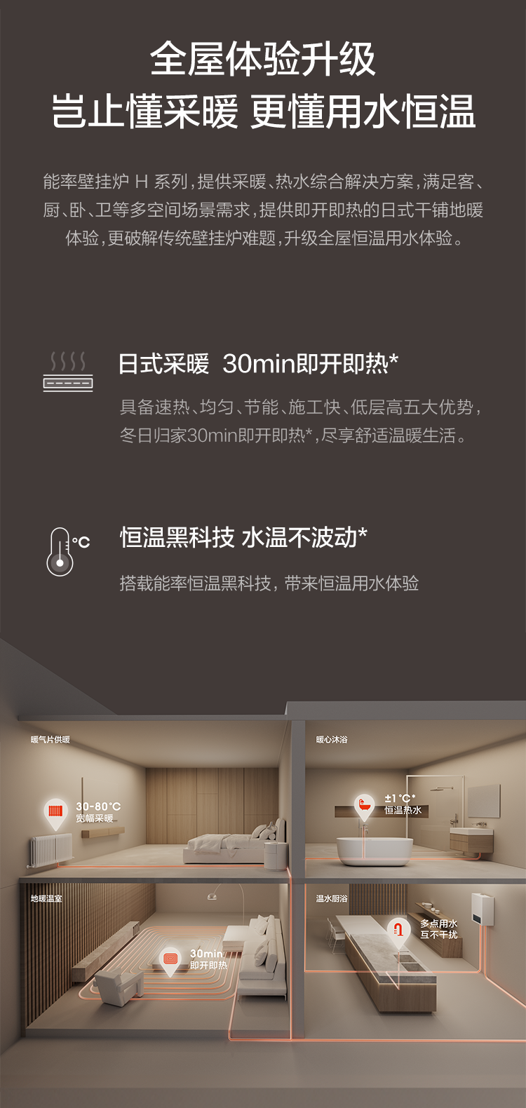 • 30-80度寬幅采暖,多場(chǎng)景采暖無(wú)憂
